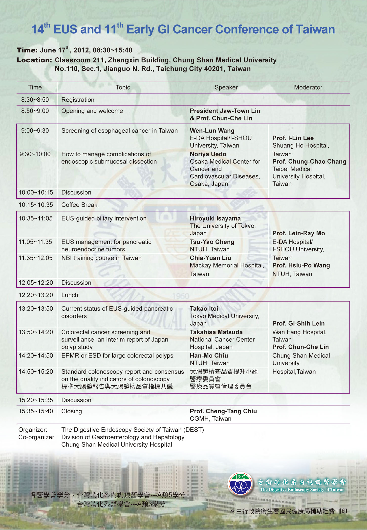 | 主講人: | Dr. Noriya Uedo等 | 本會積分: | 醫師A類 5 學分 |