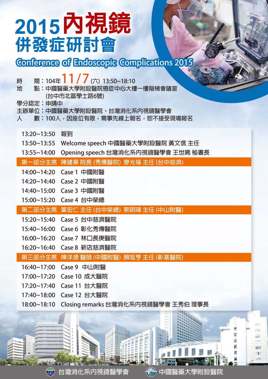 | 主辦單位: | 中國醫藥大學附設醫院腸胃科/台灣消化系內視鏡醫學會 | ||