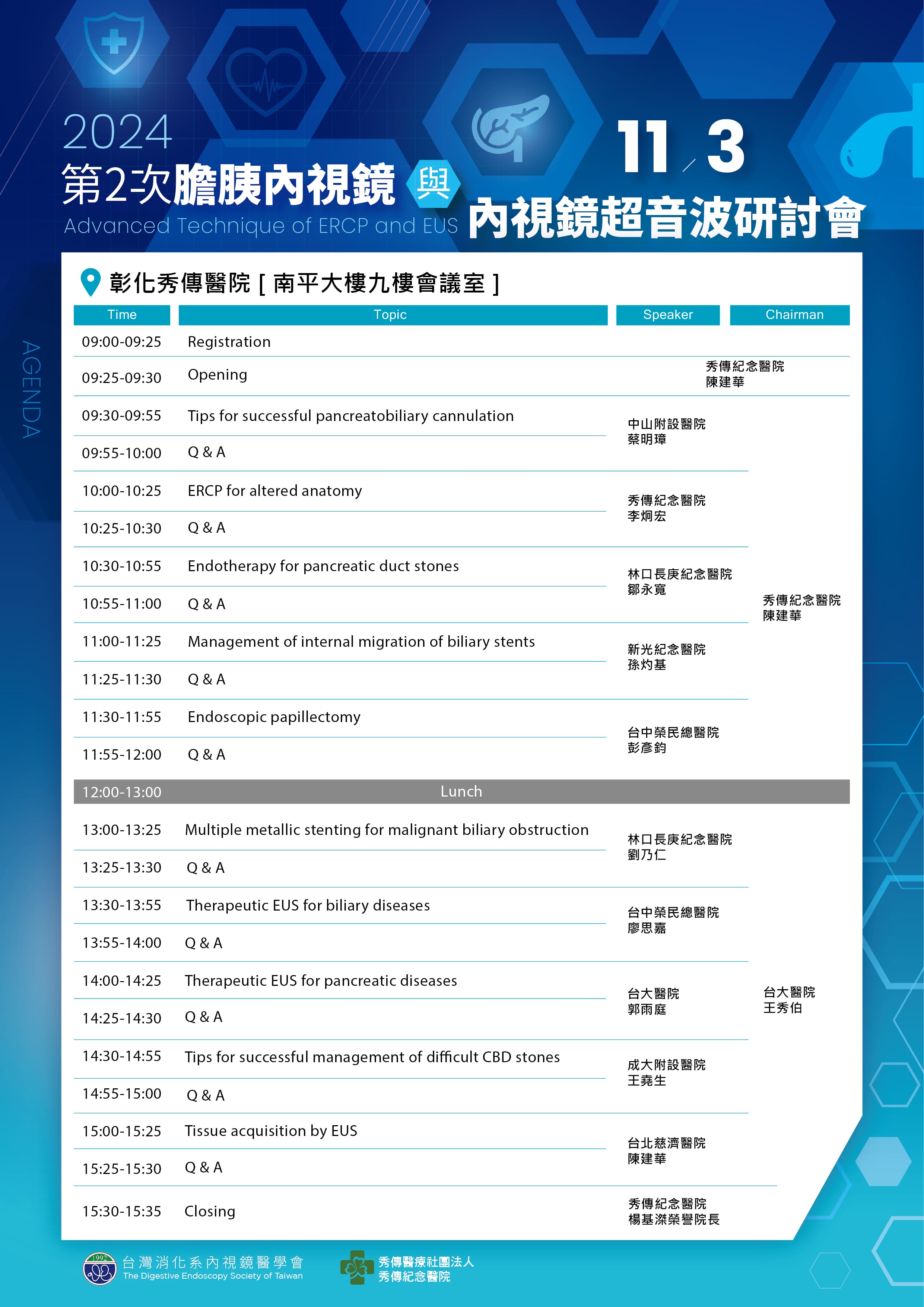 | 活動名稱: | 2024年第2次膽胰內視鏡與內視鏡超音波研討會---Advanced Technique of ERCP and EUS |