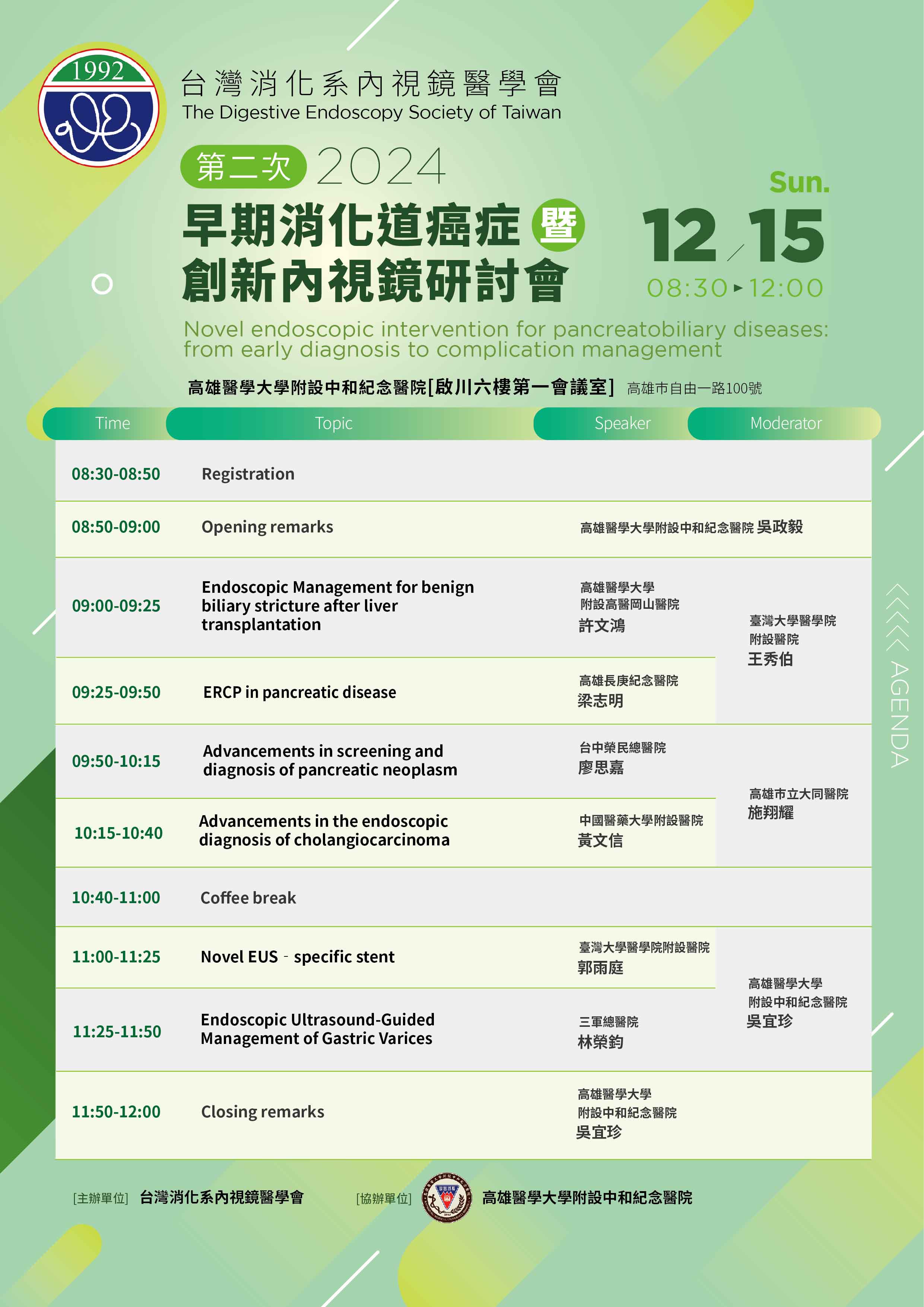 | 主辦單位: | 台灣消化系內視鏡醫學會/高雄醫學大學附設醫院 | ||